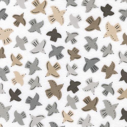 Robert Kaufman's Gentle Night Flannel fabric collection is the perfect choice for creating cozy and comforting projects for children and babies. The warmth and comfort it provides are perfect for creating everything from cuddly blankets to adorable pajamas, ensuring a cozy and gentle night's sleep. This flannel collection offers a serene and gentle color palette, including shades of gray, taupe, and cream, creating a neutral and soothing ambiance. The soft and delicate designs feature adorable animals such as moose, foxes, owls, and birds, alongside charming elements like leaves, mushrooms, and stars. Create the perfect cozy quilt with this gray flannel fabric featuring scattered white stars and crescent moons. 22366-160