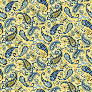 Blackbirds Are Calling - Yellow Paisley designed by Jan Mott for Henry Glass. 3204-33