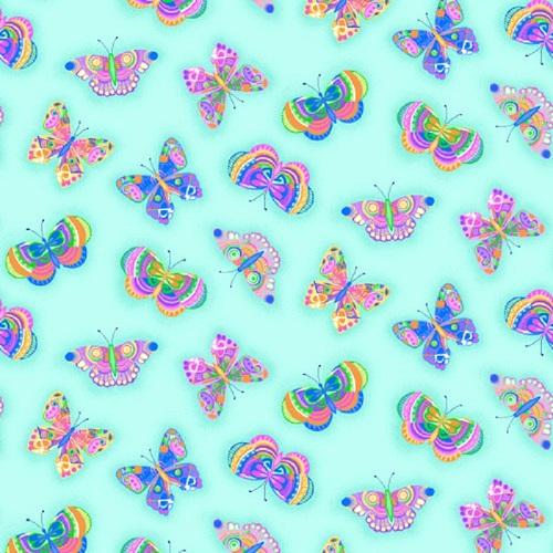Comfy Prints - Butterflies on an aqua background by A.E. Nathan. 1049-60