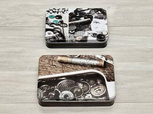 High quality tin box printed with high definition sewing photos. No hinge lid, ideal for keeping everything from threads, tape measure to scissors etc.. Ultimate gift for sewing and craft enthusiasts. Small and large tins mix inner pack as a set S tin barcode: 4895126721146, L tin barcode: 4895126721184 (imprinted on tin). Item dimensions: